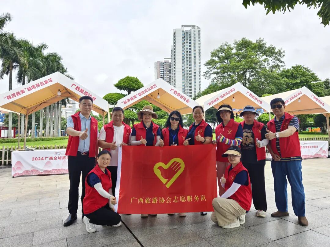 广西旅游协会志愿服务队也为本次活动的企业布展、会场布置、物资运送、活动咨询指引、秩序维护等方面提供了热情、周到、专业的服务。