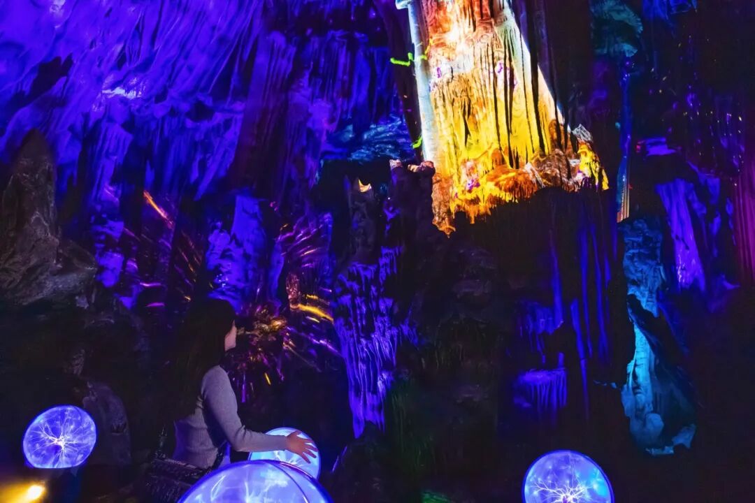 在紫云仙境,不仅可以欣赏大自然造就的瑰丽景观,而且能够沉浸式体验溶洞中的冒险故事,探索玄幻震撼的仙侠世界,打败黑暗中潜伏的恶龙猛兽,见证唯美浪漫的神话爱情,身临其境感受元宇宙带来“紫云仙境·别有洞天”的震撼效果。