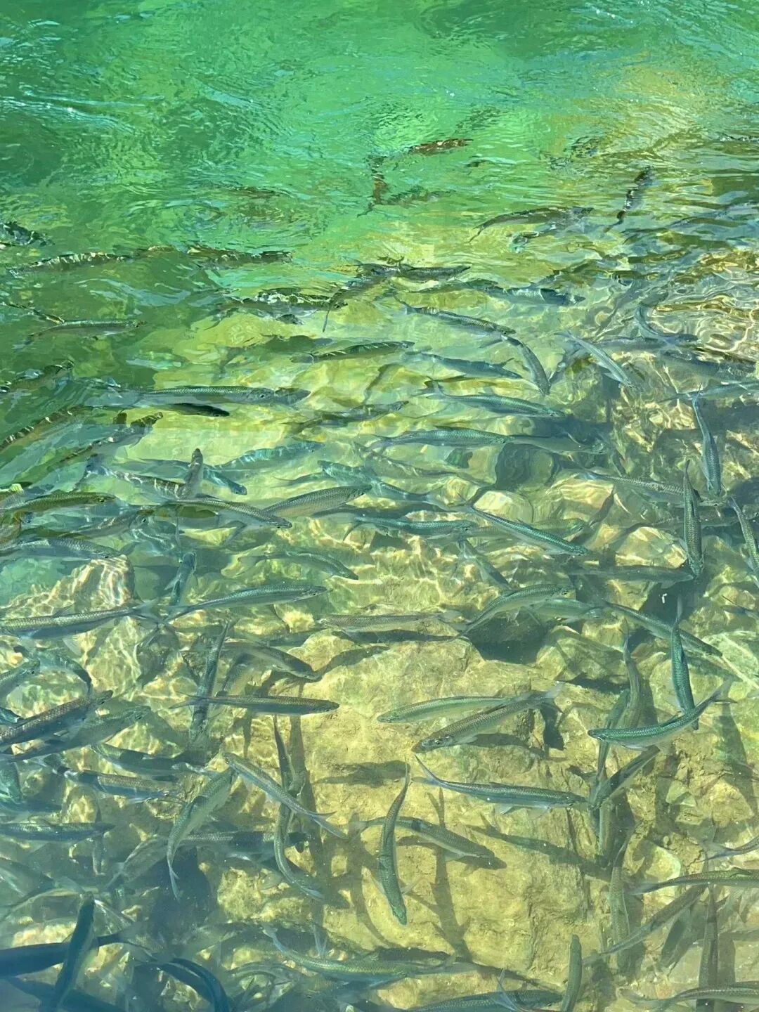 群山葱绿,草木繁茂,成群结队的蓝刀鱼群宛如精灵在清澈的河水中来回游弋,此情此景,怪不得能让人直呼“广西的水能让人来了就不想走”。