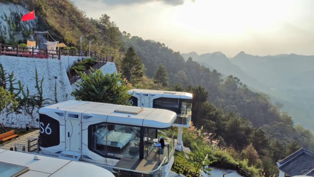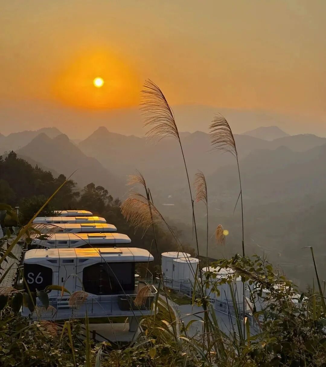 清晨看日出,傍晚赏夕阳,有时还能看到云海,拉开窗帘就能看到远处山峦起伏、云雾缭绕,拍照打卡非常出片。