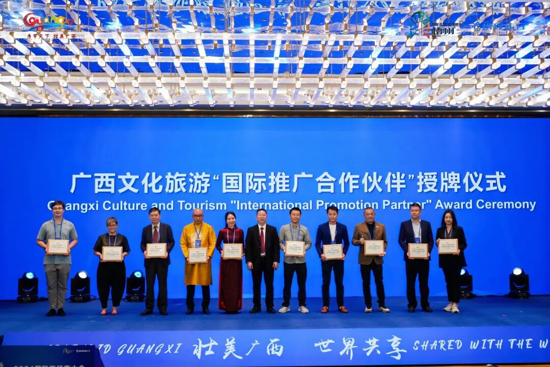 联合国世界旅游组织旅游大使祝善忠表示,希望通过此次大会,以企业为主体,充分聚焦广西和梧州优质文化旅游资源,搭建广泛的旅游企业合作平台,提升“壮美广西”国际知名度,向世界展示中国文化的魅力。世界旅游城市联合会常务副秘书长李宝春提出,广西要打造具有国际竞争力的旅游品牌,一是要提升品质,加强产业融合发展;二是要优化资源,提升文旅产业发展效能;三是要加强海外营销,提升旅游国际知名度和影响力。会上,广西文化旅游推广大使以沙画的形式向与会嘉宾推介了广西特别是梧州的入境旅游资源。大会还举行了广西文化旅游“国际推广合作伙伴”授牌仪式。广西壮族自治区文化和旅游厅厅长欧余军为10家国际旅行商授予广西文化旅游“国际推广合作伙伴”牌匾。随后,与会嘉宾共同启动了“你好!中国-发现广西”国际旅行商踩线活动。▲ “你好!中国-发现广西”国际旅行商踩线活动启动 大会还进行了主旨演讲、报告发布、主题沙龙等环节。在梧州期间,旅行商代表参加了2024年广西文化旅游嘉年华活动,造访梧州茶厂、甜蜜家蜂业生态园、黑石山六堡茶源博园、六堡小镇等旅游景区和企业。会后,嘉宾们还将分组参加“你好!中国-发现广西”国际旅行商踩线活动,前往梧州、桂林、贺州三市考察桂东与桂北文旅线路,零距离感受广西特色入境旅游资源。
