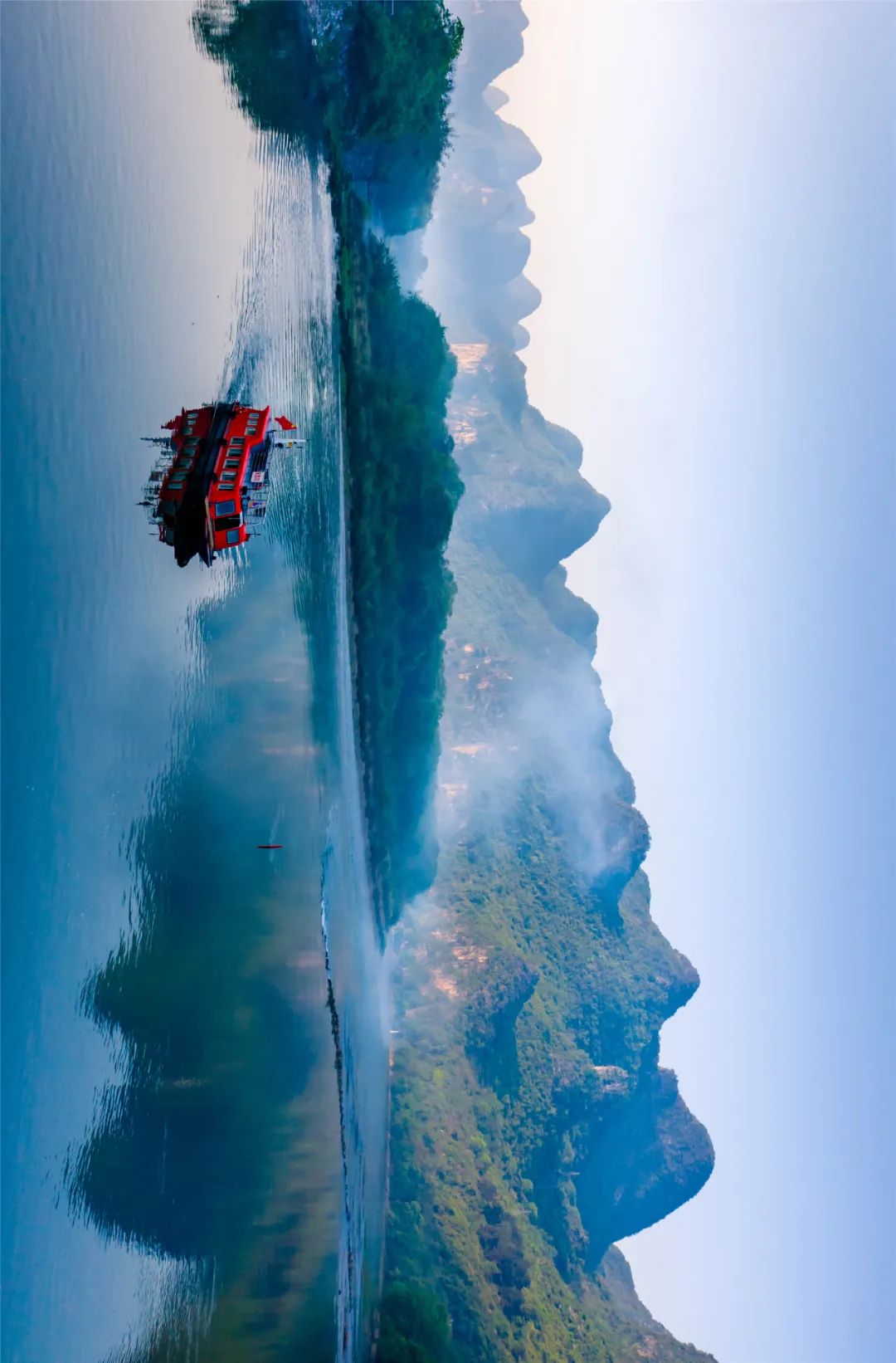 漫游江上遇见秀丽山水,晴天青峰倒影,阴天漫山云雾,雨天烟雨如梦,恰如世外桃源般。