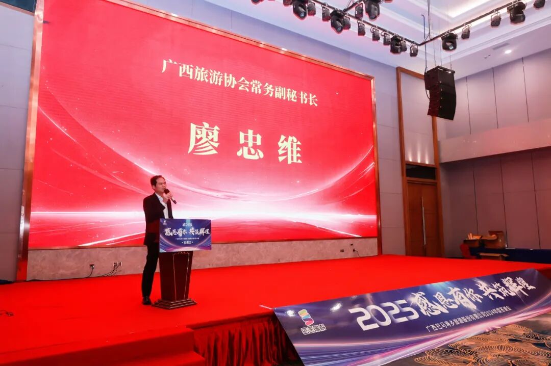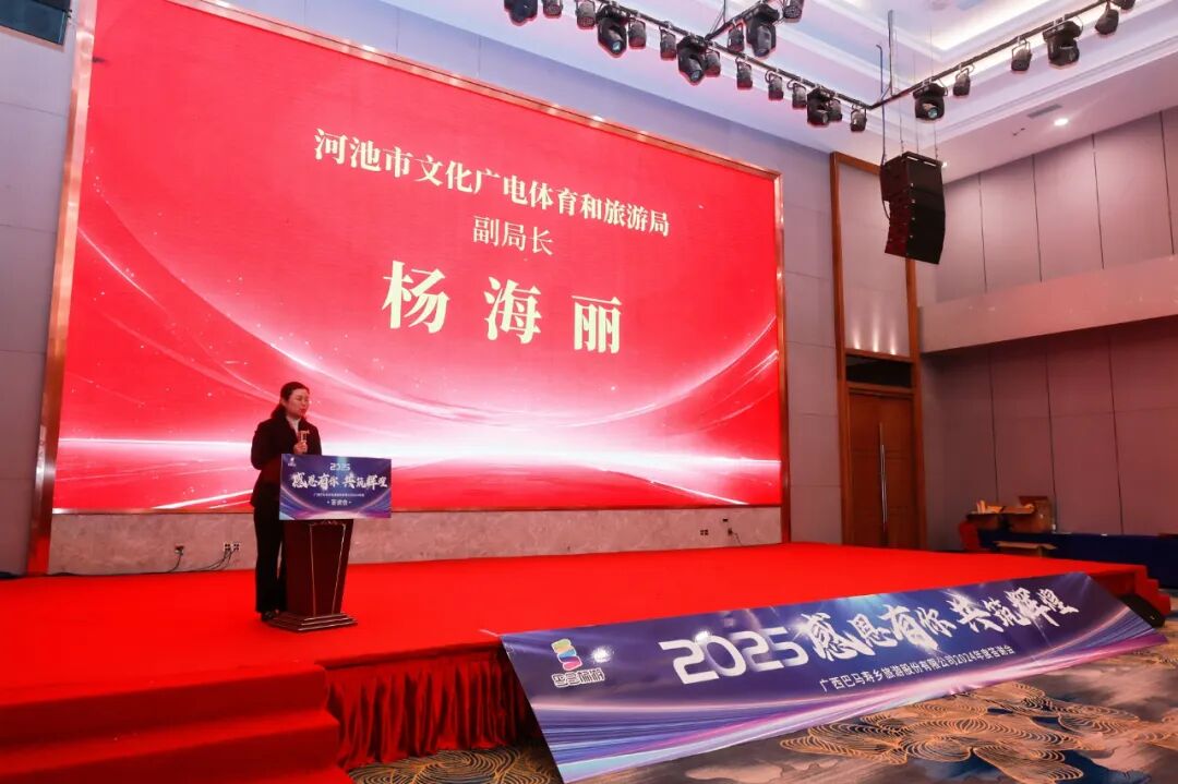 祥龙贺瑞辞岁去,金蛇含珠送福来。1 月 9日晚,广西巴马寿乡旅游股份有限公司在广西南宁裕达酒店四楼举行了一场南宁旅游客户答谢会。此次答谢会以“感恩有你,共筑辉煌”为主题,旨在回馈客户、合作伙伴一直以来的支持与付出,进一步加强各方关系,携手共创未来。广西旅游协会常务副秘书长廖忠维莅临活动并发表讲话,河池市文化广电体育和旅游局副局长杨海丽也参与活动并发表讲话。